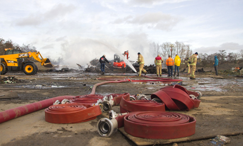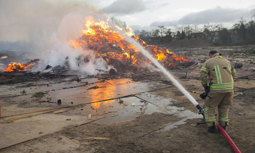 Vlaardingen – De brandweer is maandag uren bezig geweest met het afblussen van de restanten van het vreugdevuur aan de Marathonweg. Om 08:30 uur begonnen de spuitgasten met het opbouwen van de waterwinning waarna om 09:00 gestart kon worden met blussen. De brandende berg was groter dan vorige jaren en het koste veel moeite om bij de brandhaarden te komen. De gemeente kwam met een shovel assisteren maar de berg was zo massief dat het niet lukte deze uit elkaar te krijgen. Inmiddels kwamen er vanuit de Holy en vanaf de rijksweg A20 klachten binnen van rookoverlast. Rijkswaterstaat en de DCMR kwamen poolshoogte nemen hoe de stand van zaken was en hoe lang de overlast nog kon aanhouden. Er werd een graafmachine ter plaatse gestuurd om de hoop verder uit elkaar te trekken zodat deze beter en sneller afgeblust kon worden. Gemeente en brandweer waren verbaasd wat er allemaal in de stapel lag, het leek meer op een stortplaats dan een verbranding van pallets en kerstbomen. Mega dikke boomstammen, lege vaten en stukken metaal maakte de klus extra lastig. De brandweer is tot ver in de middag bezig geweest voordat de klus geklaard was. De gemeente zal de komende dagen nog een flinke klus hebben aan het opruimen van de rotzooi.