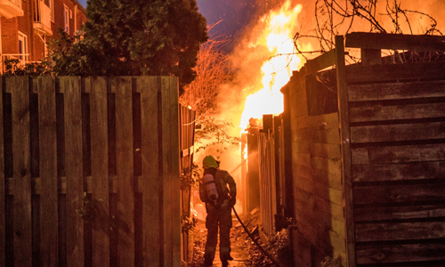 Schiedam – In een schuurtje achter de woningen van de Daltonstraat in Schiedam heeft maandagmiddag een uitslaande brand gewoed. Minstens 1 schuurtje moet als verloren worden beschouwd. Bij aankomst van de brandweer troffen zij een flinke vuurzee aan. Er werd opgeschaald naar middelbrand en een 2e blusvoertuig kwam met spoed ter plaatse. Er raakte niemand gewond. De exacte oorzaak van de brand is niet bekend.