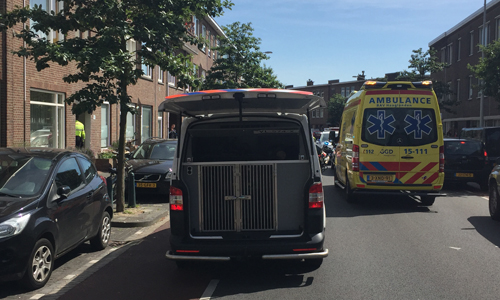 Den Haag – Hulpdiensten zijn donderdagmiddag 1 juni groots gealarmeerd na een melding van een man die dreigde van een dak te springen aan de Kamperfoeliestraat in Den Haag. Bij aankomst van de eerste agenten bleek de man waarschijnlijk onder de invloed van harddrugs te verkeren. Ondertussen waren ook meerdere brandweereenheden en een ambulance onderweg. Ook een onderhandelaar werd ingelicht, aldus een woordvoerder. Echter konden de brandweer en de onderhandelaar al snel omkeren, want de agenten ter plaatse, onder wie de hondenbrigade, wisten de man te overmeesteren. Hij is geboeid en vervolgens op de brancard gelegd en met spoed naar het ziekenhuis vervoerd. Meerdere agenten zijn met de ambulance meegereden. De ambulance kreeg begeleiding van meerdere politievoertuigen.