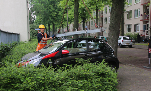 Den Haag – De bestuurster van een auto parkeerde vrijdagochtend haar auto wel op een hele rare plek. De auto kwam door nog onbekende oorzaak in de bossage terecht aan de Pieter Langendijkstraat in Den Haag. Gelukkig raakte zij niet gewond. Een berger moest er aan te pas komen om de auto uit de bossage te halen.