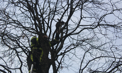 Den Haag – Een kat hield de brandweer vanmiddag druk bezig op de Schalk Burgerstraat in Den Haag. Een kat was geschrokken en was een boom in gerend, na een aantal uur besloot een bewoner de  brandweer te bellen. De brandweer kwam ter plaatse en besloot een poging te doen met de ladder, de kat had hier problemen mee en ging steeds hoger de boom in. Na meerdere pogingen met de ladder werd de hoogwerker van kazerne Centrum ter plaatse gevraagd. Uiteindelijk kwam de kat een stukje naar beneden en kon een brandweerman hem pakken. Toen de kat weer beneden was ging die er direct vandoor.