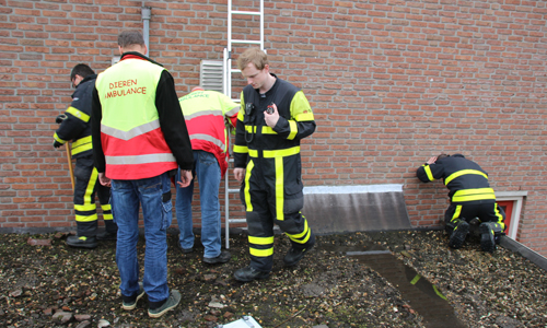 Monster – De Monsterse brandweer werd woensdagmiddag 1 maart gealarmeerd voor een dier in problemen. Een monteur van een garage aan de Heckenrathstraat hoorde gemiauw tussen twee garages komen en belde de dierenambulance. De poes bleek in de gleuf te zijn gevallen en er mogelijk al enkele dagen te verblijven. De medewerkers van de dierenambulance hebben de brandweer erbij gevraagd aangezien er onmogelijk bij de poes te komen viel. De brandweer heeft het dier bevrijd middels een vangstok. Hierna heeft de dierenambulance de poes meegenomen. Het dier is erg verzwakt. Naar de eigenaar(s) van het beestje wordt nog gezocht.
