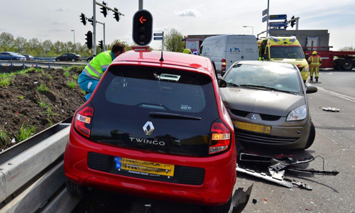Zoetermeer – Op de afslag van de A12 in Zoetermeer vanuit Den Haag zijn dinsdagmiddag 1 mei twee auto’s in een frontale aanrijding terechtgekomen. Er was al snel een ambulance met een inzittende naar het ziekenhuis gereden, deze vertrok met spoed. Nog twee andere gewonden werden ter plaatse gecontroleerd, of deze zijn vervoerd is niet bekend. Een berger heeft beide voertuigen weggesleept. In totaal heeft de politie 16 bekeuringen uitgeschreven voor bestuurders die het rode kruis negeerde.