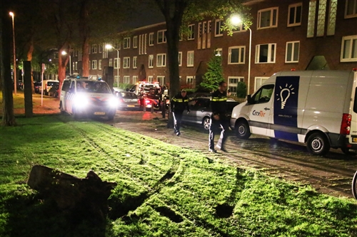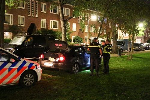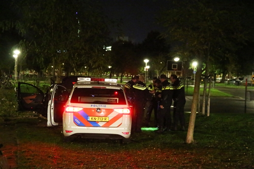 De politie hield een inzittende aan. Het gebied rondom de auto is afgezet geweest met lint. De politie heeft uitgebreid onderzoek gedaan en hield omstanders op flinke afstand.