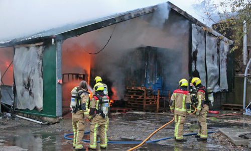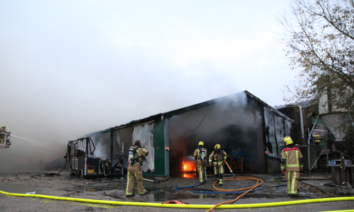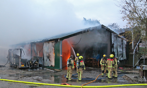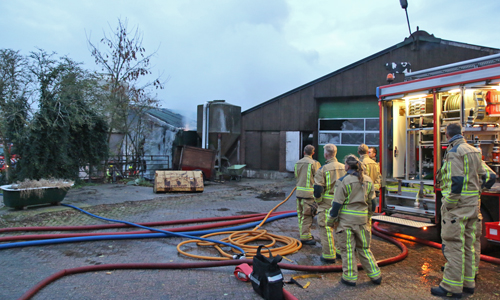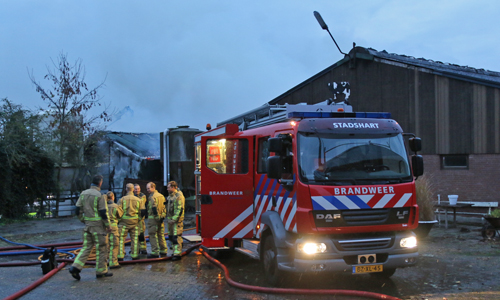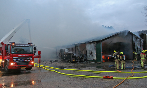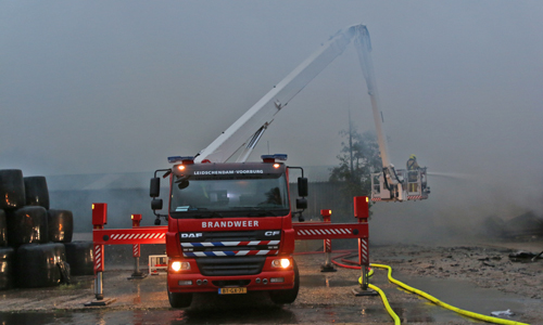 Stompwijk – Donderdagavond 1 november kwam er op de meldkamer van de brandweer een melding binnen over een uitslaande brand in een hooischuur aan de Stompwijkseweg in Stompwijk. Direct werden meerdere brandweer-eenheden ter plaatse gestuurd. Op de weg naar het brandadres stuitte de brandweer op werkzaamheden, hierdoor moest een brandweerwagen een stuk off-road richting het brandadres, de brandweerwagen gleedt halverwege weg en kwam vast te zitten. Brandweermannen zijn direct begonnen met bluswerkzaamheden. De brandweer schaalde bij aankomst direct op naar het sein ‘Grote Brand’. Overige brandweer-eenheden zijn via een omweg ter plaatse gekomen. De hooischuur en een naast de hooischuur geparkeerde vrachtwagen zijn door de felle brand volledig uitgebrand.