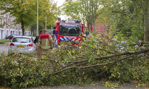 1 oktober Brandweer verwijdert boom over de weg van Baerlestraat Vlaardingen