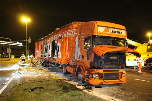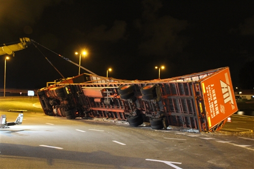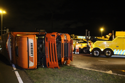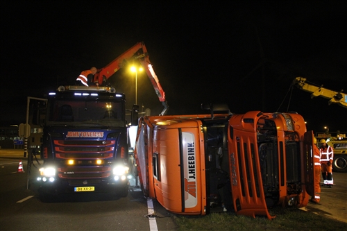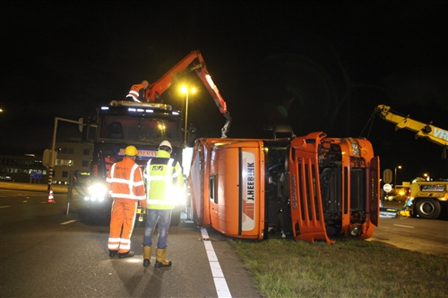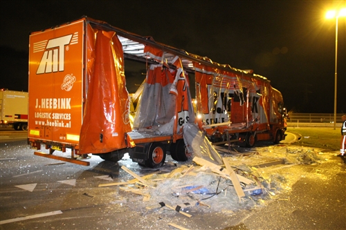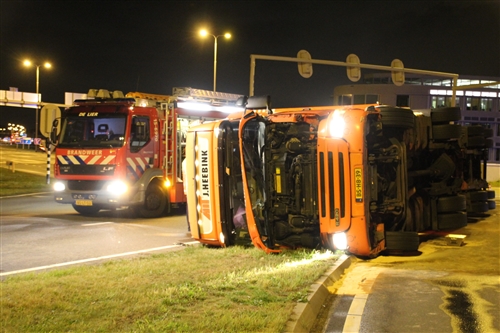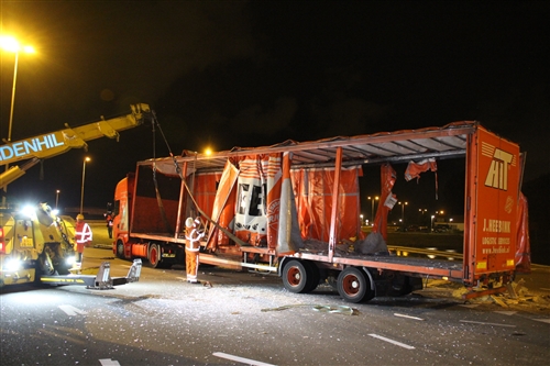 De Lier – Maandagavond is er een vrachtwagen gekanteld op het Westerleeplein in De Lier. De 24 ton wegende vrachtwagen vervoerde glasplaten. De bestuurder kwam vast te zitten in zijn cabine en is later met behulp van een ladder bevrijd. Hij is naar het ziekenhuis vervoerd. Een opgeroepen traumahelikopter is gecanceld. De glasplaten zijn door de provincie uit de vrachtwagen verwijderd, alvorens de vrachtwagen overeind kon worden geholpen. De hele berging heeft uiteindelijk tot half 1 geduurd. Hierna is een aannemer begonnen met het reinigen van het wegdek, wat bezaaid ligt met glasscherven. Het Westerleeplein is een rotonde waar meerdere N-wegen en de A20 elkaar kruisen.