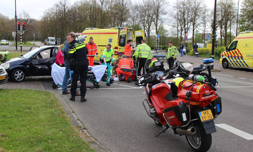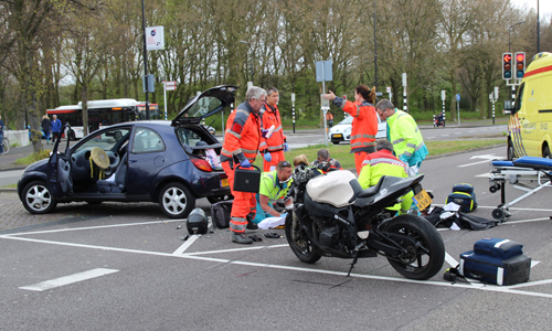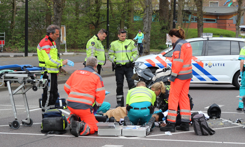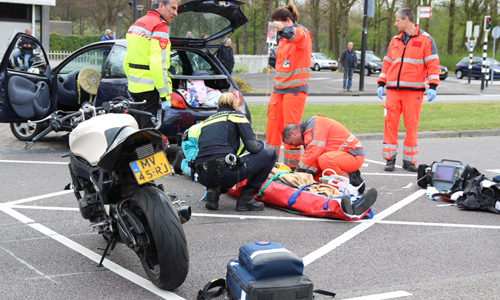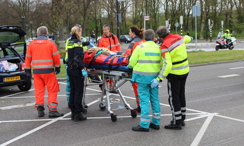 Rijswijk – De hulpdiensten waaronder het MMT (mobiel medische team) werden maandagochtend gealarmeerd voor een ongeval op de Schaapweg in Rijswijk. Ter plaatse had er een ongeval plaatsgevonden tussen een personenauto en een motor. De motorrijder is gefixeerd in het vacuümmatras en uiteindelijk met spoedtransport naar het ziekenhuis vervoerd. De inzittende van de personenauto is met onbekend letsel, met A2 (Zonder Spoed) vervoerd naar het ziekenhuis. De arts van het MMT is niet met de ambulance meegereden, hun kregen direct weer een nieuwe inzet. De VOA (Verkeers Ongevallen Analyse) is ter plaatse om de exacte toedracht van het ongeval te onderzoeken.