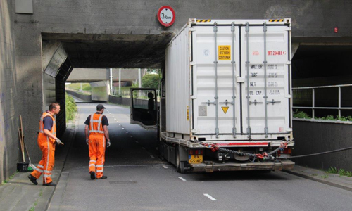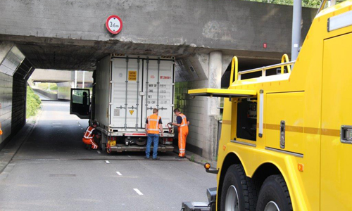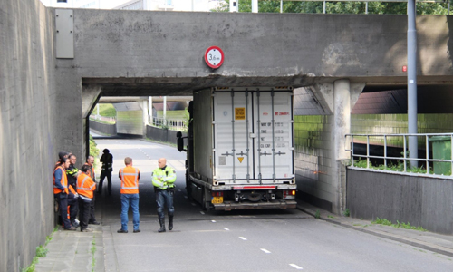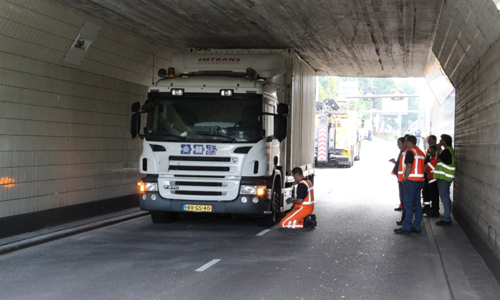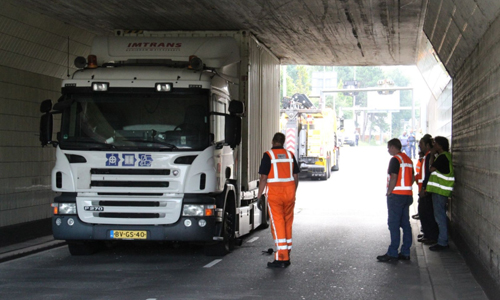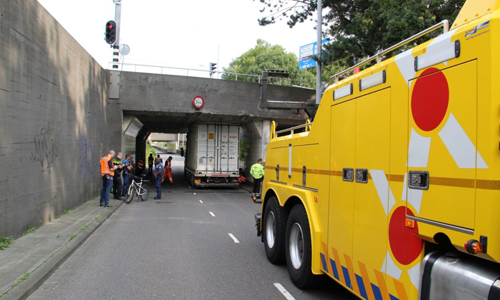 Rotterdam – Donderdagochtend heeft een vrachtwagen de hoogte van zijn combinatie verkeerd ingeschat op het Droogleever Fortuijnplein in Rotterdam. De vrachtwagen is halverwege de tunnel blijven steken. Als gevolg hiervan is de weg tijdelijk afgesloten geweest. Met behulp van een sleepwagen is na enige tijd de vrachtwagen onder de tunnel vandaan gehaald.