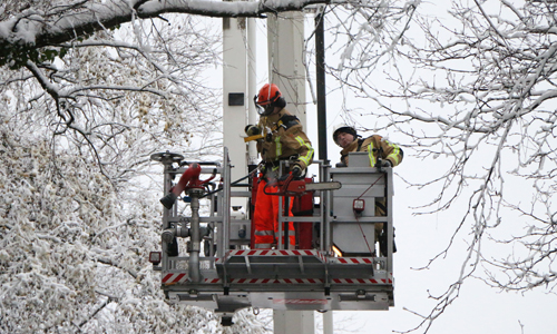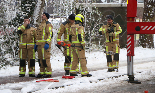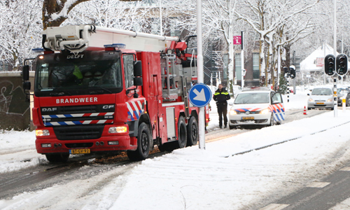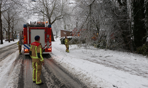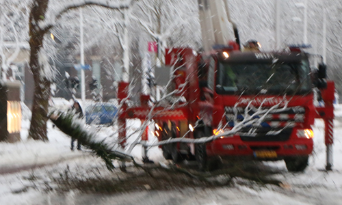 Delft – De brandweer van Delft is rond het middaguur uitgerukt naar de Schoenmakersstraat in Delft. Aldaar waren meerdere takken afgebroken van verschillende bomen. Ook stonden er 2 grote takken op het punt om om te vallen. De brandweer heeft samen met de politie de Schoenmakersstraat afgesloten. Een lesauto die door de afzetting heen kwam heeft een waarschuwing gekregen van de politie. De brandweermannen in de hoogwerker hebben een tak in stukken gezaagd. Met een stokzaag zijn meerdere kleine loshangende takken verwijderd.