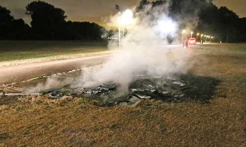 Den Haag – Door een in brand gestoken Dixi was er in de nacht van maandag op dinsdag even een flinke vlammenzee te zien in het Zuiderpark in Den Haag. Toen de brand werd ontdekt was er van de Dixi niks meer over. De brandweer kon het vuur snel blussen. Een flink stuk van het grasveld was zwart van de brand.
