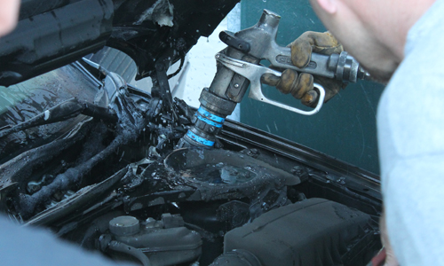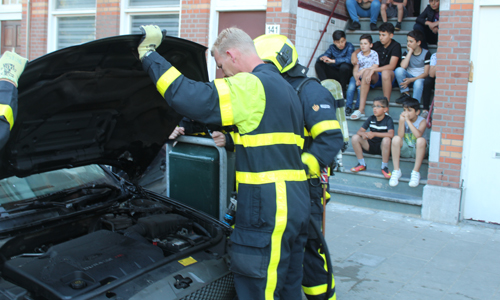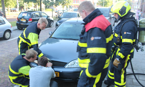 Den Haag – Zaterdagavond stond er op de Delfselaan in Den Haaag een geparkeerde auto in brand. Een buurtbewoner zag rook onder de motorkap vandaan komen en twijfelde geen moment, hij pakte een emmer water en begon met blussen. De brandweer heeft uiteindelijk de blussing overgenomen. De eigenaar van het voertuig kwam een kijkje nemen en opende de motorkap. Hoe de brand is ontstaan is niet bekend, brandstichting word niet uitgesloten.