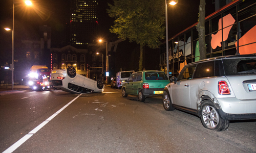 Rotterdam – In de nacht van woensdag op donderdag is op de Stieltjesstraat in Rotterdam-Zuid een auto over de kop geslagen. Hierbij werden ook nog 3 geparkeerde auto s geraakt die hierdoor schade opliepen. De weg was geruime tijd geblokkeerd. Een ambulance kwam ter plaatse om de inzittende na te kijken. Hoe het ongeval heeft kunnen gebeuren is nog niet bekend. Een takelwagen heeft de auto weer op 4 wielen gezet en meegenomen.