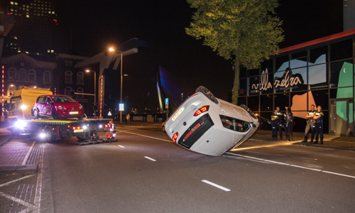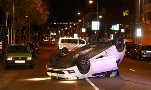 Home Rotterdam-Rijnmond 10 mei Auto over de kop Stieltjesstraat Rotterdam