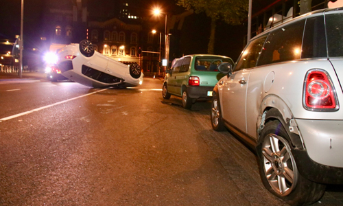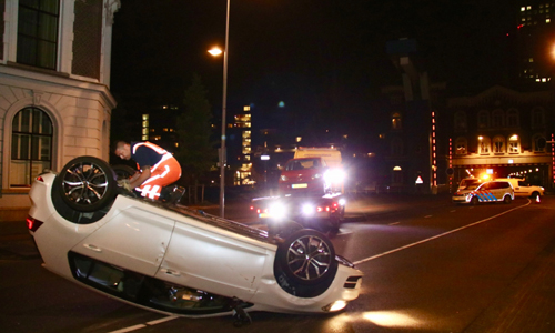10 mei Auto over de kop Stieltjesstraat Rotterdam