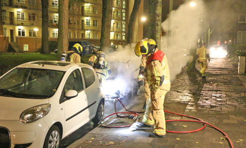 10 november Geparkeerde auto gaat in vlammen op Teding van Berkhoutlaan Delft [VIDEO]