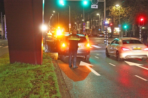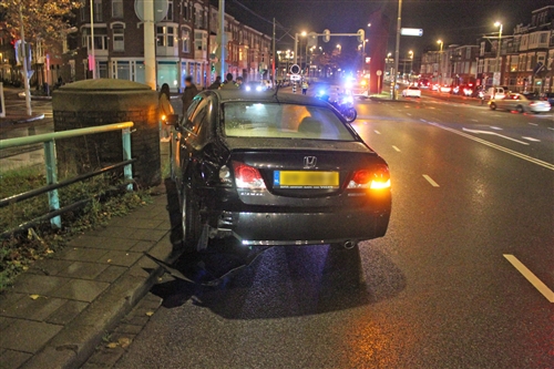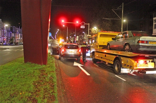 Den Haag – Op de kruising Spaarneplein met het Schenkviaduct in Den Haag heeft zaterdagavond een kop-staart aanrijding plaatsgevonden tussen twee auto’s. Een van de auto’s schoot na de aanrijding door, is gaan tollen en kwam tegen de richting op de stoep tot stilstand. Bij de aanrijding raakte één persoon gewond. Het slachtoffer is zonder spoed naar het ziekenhuis vervoerd. De verkeerspolitie heeft kort onderzoek gedaan naar de aanrijding. De auto’s zijn kort hierna door een berger geborgen.
