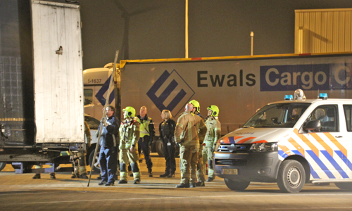 11 januari Grote zoektocht rond vrachtwagen na aantreffen vluchteling Hoek van Holland
