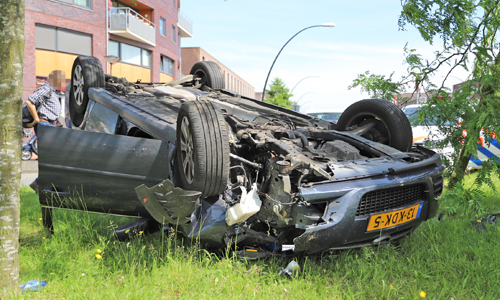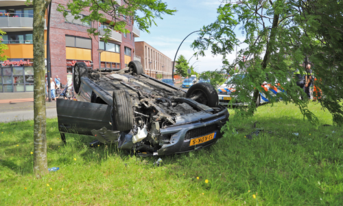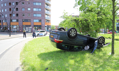 Home Den Haag 11 juni Auto over de kop na eenzijdig ongeval Parijsplein Den Haag...