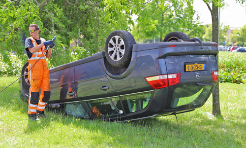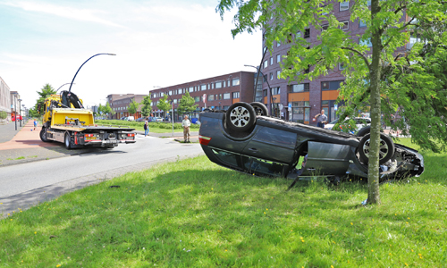 11 juni Auto over de kop na eenzijdig ongeval Parijsplein Den Haag [VIDEO]