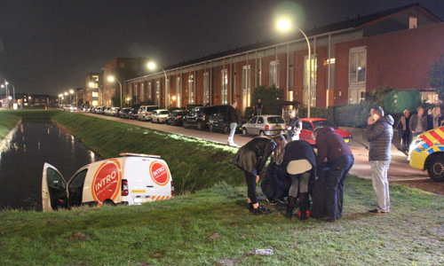 Den Haag – De politie en ambulancedienst zijn zaterdagavond gealarmeerd voor een voertuig te water aan de Blauwe Reigersingel in Den Haag. Ter plaatse bleek er een bestelbus het water in te zijn gereden. De man is door de ambulancedienst onderzocht op verwondingen. Hij hoefde uiteindelijk niet naar het ziekenhuis, maar is overgebracht naar het politiebureau omdat de man onder invloed was van alcohol.