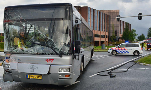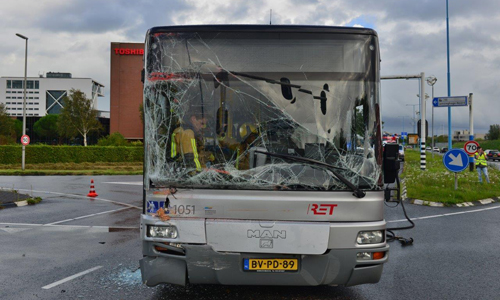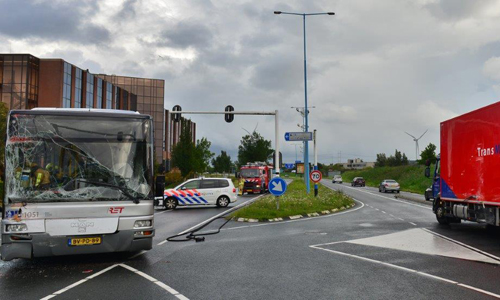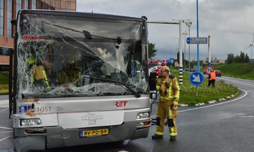 Zoetermeer – Maandagmiddag 11 september heeft er op de Zuidweg in Zoetermeer een aanrijding plaatsgevonden tussen een vrachtwagen en een bus. De passagiers van de bus eveneens de chauffeur van de vrachtwagen en de bus zijn direct na de aanrijding opgevangen door personeel van een naastgelegen Mac Donalds. De brandweer kwam met spoed ter plaatse voor hand- en spandiensten. In totaal zijn er 3 ambulance’s ter plaatse gekomen. Meerdere personen zijn na onderzoek vervoerd naar het ziekenhuis. De VOA (Verkeers Ongevallen Analyse) heeft ter plaatse onderzoek gedaan.