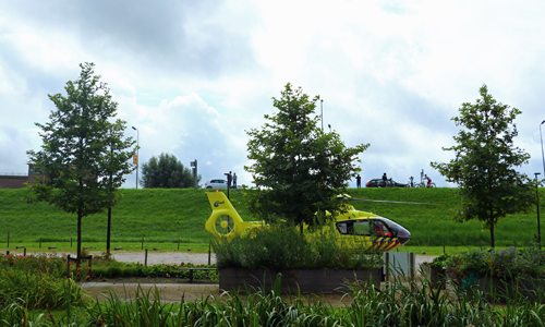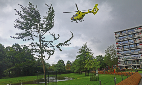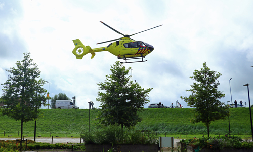 Gouda – Omstreeks 12 uur vanmiddag werden de hulpdiensten gealarmeerd voor een medische noodsituatie bij de Zuidrandflat aan de La Reylaan in Gouda. Wat er zich heeft afgespeeld is niet bekend, maar de situatie was dermate ernstig dat ook de traumahelikopter uit Rotterdam moest komen om bijstand te verlenen aan het ambulance-personeel. Zij kwamen vrij snel ter plaatse en landde vervolgens bij de Hanepraij. Waarna ze door een persoon met een auto naar de plek werden gebracht en ze vervolgens binnen, samen met het ambulance personeel, enige tijd bezig zijn geweest met het behandelen van het slachtoffer. Nadat het slachtoffer stabiel genoeg was, is de ambulance met A1 (Spoed) onder begeleiding van de arts van het MMT naar het ziekenhuis gereden.