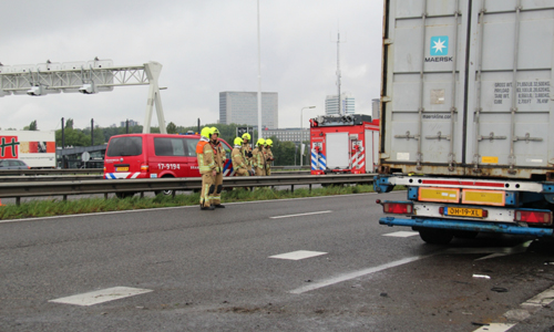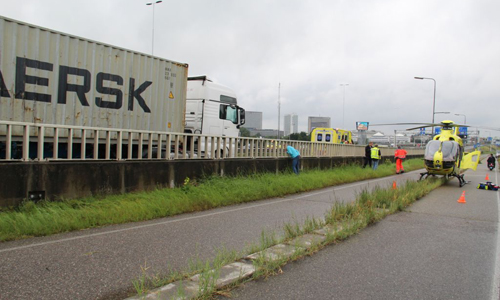 Rotterdam – Een vrachtwagen is zaterdagochtend net voorbij de Brienenoordbrug op de A16 in Rotterdam tegen de vangrail gebotst. De linkervangrail werd geraakt, waarna de wagen aan de rechterkant van de weg weer tot stilstand kwam. De hulpdiensten werden massaal ter plaatse gestuurd omdat er mogelijk gevaarlijke stoffen bij betrokken waren. De ambulance en brandweerwagens stonden op de A16, waardoor ook de rechterrijstrook van de hoofdrijbaan werd afgesloten. De traumahelikopter landde op het naastgelegen fietspad. De chauffeur van de vrachtwagen is met onbekend letsel overgebracht naar het ziekenhuis.
