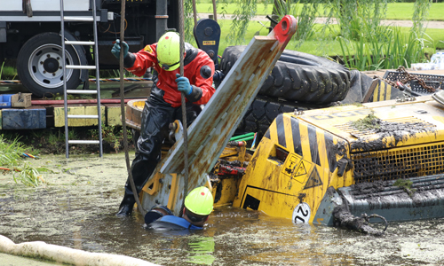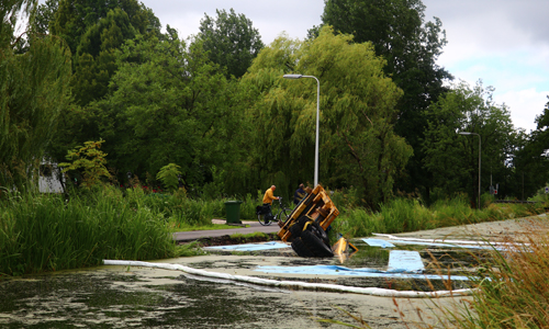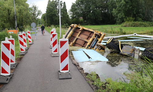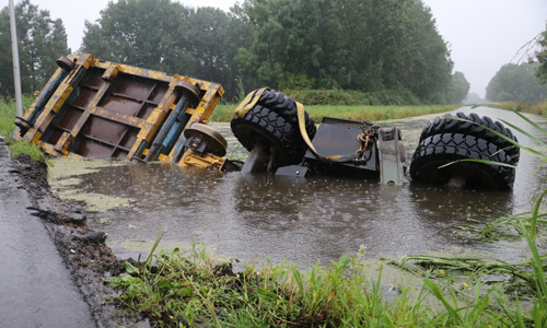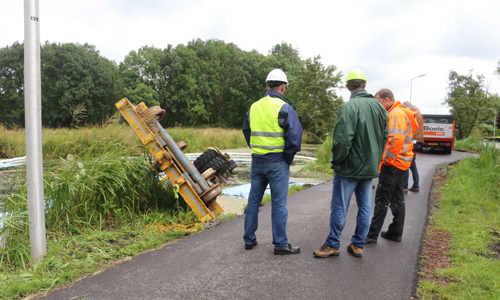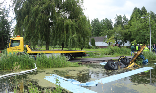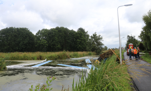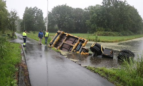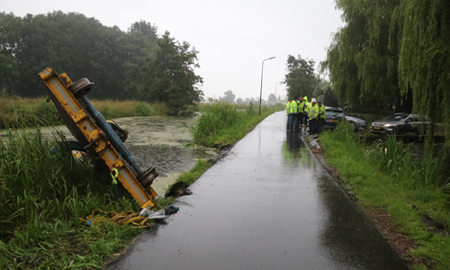 Woensdagochtend werd de brandweer gealarmeerd voor een dienstverlening op de Achterwillenseweg in Gouda. Ter plaatse bleek er een graafmachine met aanhangwagen te zijn gekanteld en kwam hierdoor in het water terecht. De bestuurder kon zelfstandig het voertuig verlaten en raakte niet gewond. Verschillende instanties kwamen ter plaatse om de situatie te bekijken. Er is uiteindelijk door ProRail besloten om het voertuig maandagochtend te gaan bergen. Hoe het voertuig precies te water heeft kunnen raken is niet bekend. De Achterwillenseweg zal tot nader bericht gestremd zijn.