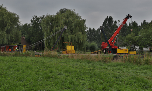 Door het gewicht van het voertuig bleek dat de bergklus niet 1 dag was geklaard. Diverse bergingsbedrijven konden geen oplossingen vinden voor het probleem, waardoor ProRail zelf heeft besloten de klus op zich te nemen. Met de hulp van HEBO Maritiem en een aantal andere bedrijven, welke gespecialiseerd zijn in dit soort bergingen is het vandaag gelukt om de kraan te bergen. De Achterwillenseweg tot 25 juli afgesloten voor al het verkeer. Verkeer kan omrijden via de Platteweg en/of het Goudse Hout