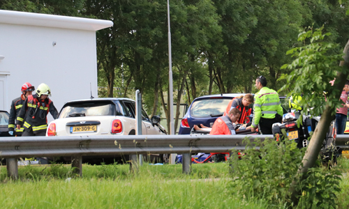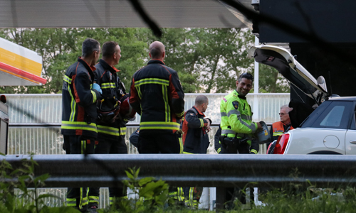 Gouda – Een 20-jarige Rotterdammer is zondag 11 juni even voor 20.00 uur met zijn auto tegen een tankunit van tankstation De Andel langs de A12 gereden. De auto reed daarna vervolgens tegen de achterzijde van een stilstaande auto. Een medisch team kwam met de traumahelikopter ter plaatse om assistentie te verlenen. De Rotterdammer bleef ongedeerd. Hij werd aangehouden en zijn rijbewijs werd in beslag genomen. De politie vermoedt dat hij onder invloed was van verdovende middelen en wilde hiervoor een bloedonderzoek laten uitvoeren. De bestuurder weigerde dit onderzoek. Deze weigering wordt ook in het dossier van de aanrijding opgenomen. Zijn auto is in beslaggenomen voor verder onderzoek. De vriendin van de Rotterdammer die ook in de auto zat werd overgebracht naar het ziekenhuis omdat zij bewusteloos was. Mogelijk was zij al voor de aanrijding niet bij kennis en onder invloed van alcohol en/of drugs. In de auto die verderop werd aangereden van zaten vier personen, een gezin uit Doetinchem met twee kinderen. Een vijfde persoon was kort daarvoor uitgestapt. Alleen de bestuurster, een 48-jarige vrouw, werd voor de zekerheid voor controle overgebracht naar het ziekenhuis. De politie doet verder onderzoek naar de aanrijding.
