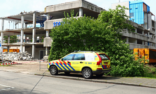 Woerden – Rond 10 voor half 12 vanochtend werd de brandweer van Woerden gealarmeerd voor een ongeval aan de Bleekerijlaan in Woerden. Aldaar men bezig was met sloopwerkzaamheden in het oude gemeentehuis. Eenmaal ter plaatse bleek door een vooralsnog onbekende reden een gebouw gedeeltelijk ingestort te zijn. Waarbij minstens 1 bouwvakker onder het puin terecht kwam en vrijwel direct overleed. Een bouwvakker was bezig met zaagwerkzaamheden op de eerste verdieping toen ineens, uit het niets, de verdieping boven hem, na beneden viel. Waarna de vloer waarop hij stond ook na beneden stortte. Hierdoor kwam de man bekneld te zitten onder het puin wat er overbleef na de instorting. Omdat er echter toch nog hoop was dat de man het overleefd zou hebben en er mogelijk een grote reddingsoperatie op touw moest worden gezet. Werd de specialistische hulp van het Specialistische Technische Hulpverlening (STH) teams ingeschakeld. Teams uit West (Alphen a/d Rijn) en Midden (Beusichem) kwamen met hun manschappen en wagens met spoed naar het incident. Tevens werden naast de TS/HV/OvD ook meerdere ambulance’s en de traumahelikopter gealarmeerd, welke allen ook daadwerkelijk bij het incident aankwamen rijden met spoed. Nadat een plan van aanpak was geregeld en er kranen bij het incident aankwamen, werd gestart met het bergen van het lichaam van het slachtoffer. Waarna de hulpdiensten weer retour naar de kazerne konden gaan. Door de melding waren omliggende straten voor al het verkeer afgesloten, dit om te voorkomen dat er trillingen ontstonden. Deze trillingen zouden namelijk gevaar kunnen opleveren voor hulpverleners die nabij het pand waren, omdat het pand vrij instabiel was rond het slachtoffer. Wanneer de sloopwerkzaamheden hervat worden is niet bekend. Deze waren er omdat het oude gemeentehuis word gesloopt voor een nieuw pand. Tijdelijk heeft de gemeente nabij het oude pand een locatie waar de zaken worden geregeld.