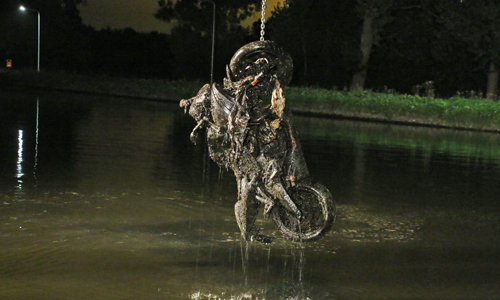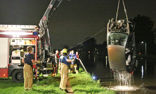 De gealarmeerde ambulancedienst kon hierop weer retour. De brandweer haalde naast de auto die volledig gestript bleek te zijn, ook een motor uit het water. De politie doet verder onderzoek.