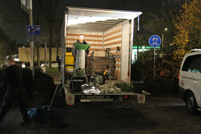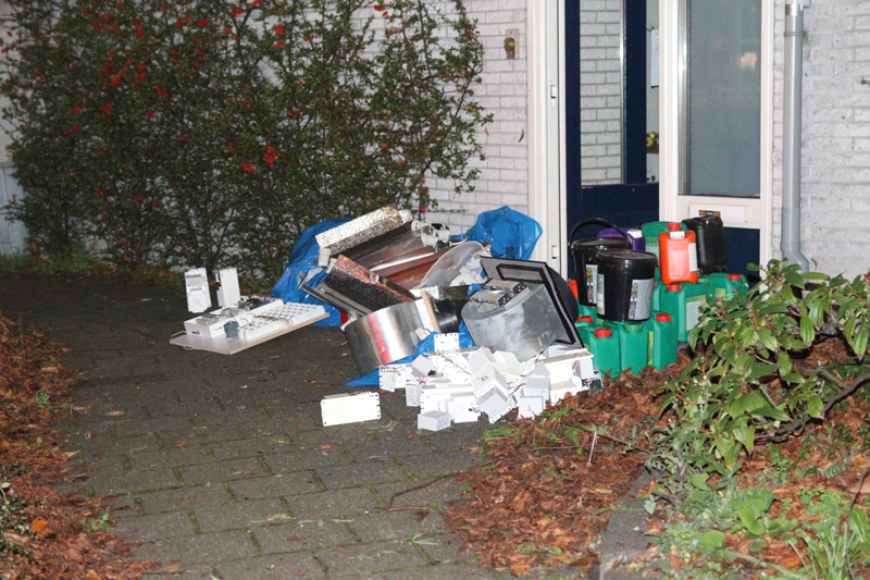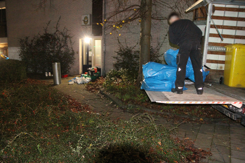 Een speciaal bedrijf is ter plaatse om het hele pand leeg te halen.