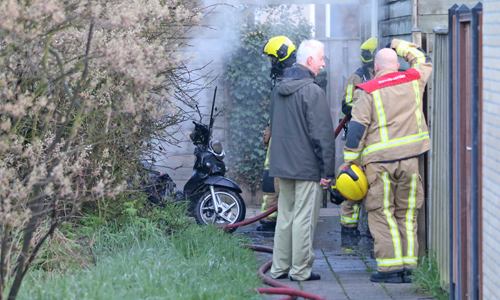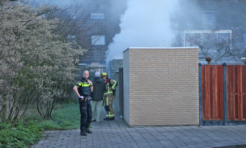 Delft – Vrijdagochtend 13 april heeft er op de Marie Besstraat in Delft brand gewoedt in een schuur. Door de brand waren er een tijdje flinke rookwolken te zien. De brandweer kwam met spoed ter plaatse en heeft met 2 stralen lage druk de brand in de schuur geblust. De eigenaar van de schuur merkte de brand zelf op. Uiteindelijk heeft de brandweer o.a. een afgebrande scooter uit de schuur gehaald. Of dit ook daadwerkelijk de oorzaak van de brand was is niet bekend, de schade aan de schuur en de inhoud is enorm.
