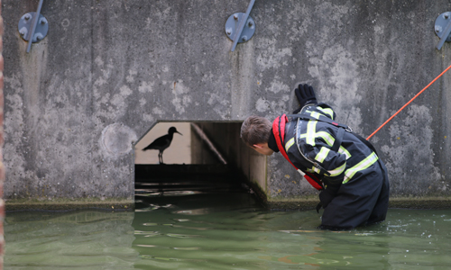 Delft – De brandweer van de kazerne Delft is zondagochtend 13 augustus gealarmeerd voor een dier in problemen aan de Parkzoom in Delft. Ter plaatse bleek er al een aantal dagen een vogel in een duiker te zitten. Omdat de ouders de vogel kwijt waren hebben buurtbewoners gebeld. De brandweer is met 2 man in waadpakken naar de duiker gegaan. Toen de brandweerman het beestje wou vastpakken vloog het beestje weg. De brandweer is hierna retour gegaan naar de kazerne.