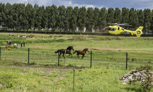 Schiedam – Een meisje is zondagmiddag gewond geraakt na een trap van een paard. Het ongeval gebeurde in een weiland aan de Polderweg in Schiedam. Naast de politie en een ambulance werd ook de traumahelikopter ter plaatse gestuurd. Het slachtoffer kon even later zelfstandig naar de ambulance lopen. Kort daarna kon de traumahelikopter weer vertrekken.