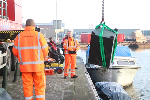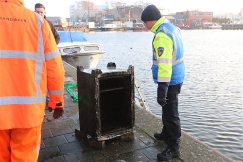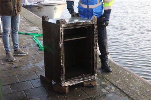 Den Haag – Donderdagochtend 13 december heeft de brandweer de politie ondersteund op de Goudriaankade in Den Haag. Het LTOZ (Landelijk Team Onderwater Zoekingen) had de hulp ingeroepen van de duikers en een kraan van de brandweer. Een duiker van de brandweer is te water gegaan en kon de kluis al snel lokaliseren. Op de weg richting het water waren krassen te zien van de wielen van de kluis. De brandweer heeft met een kraan de kluis uit het water getakeld, de kluis had geen deur meer en ook geen inhoud. De politie doet verder onderzoek. De kluis is eerder dit jaar gestolen bij een inbraak.