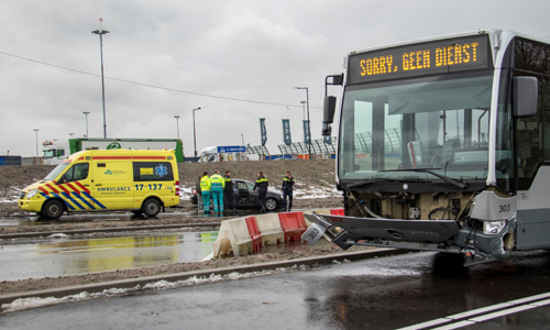 Vlaardingen – Woensdagmiddag heeft er op de Mr. L.A. Kesperweg een aanrijding plaatsgevonden tussen een RET bus en een personenauto. Het ongeval gebeurde op de nieuwe busoversteek, tussen Vulcaanweg en de Van Hogendorplaan. In deze nieuwe wegsituatie steken de bussen op een eerder moment schuin over, om later op het drukke verkeersknooppunt een oversteek minder te hebben, zodat dit de verkeersdoorstroming ten goede komt.