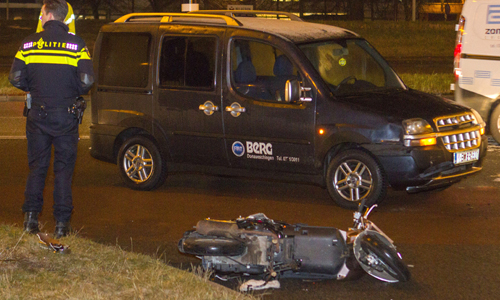 Vlaardingen – Een scooterrijder is maandagmorgen gewond geraakt bij een aanrijding op de Schiedamsedijk in Vlaardingen. Het ongeluk gebeurde op het verkeersknoppunt Vijfsluizen bij de oprit van de A4 naar de Beneluxtunnel. Er werden twee ambulances met spoed ter plaatse gestuurd voor het slachtoffer. Door het ongeval ontstond er een flinke verkeerschaos vanuit Schiedam en Vlaardingen. Toen het ongeval plaatsvond waren de stoplichten op deze drukke kruising niet in werking. Een passerend bedrijf met verkeersregelaars stopte en gingen spontaan het verkeer regelen. Tevens kwam er een ander bedrijf ter plaatse om de stoplichten weer in werking te stellen. Het slachtoffer is per ambulance overgebracht naar het ziekenhuis.