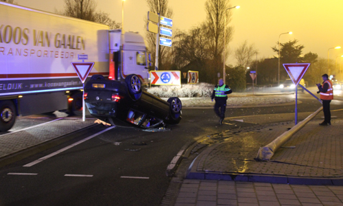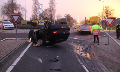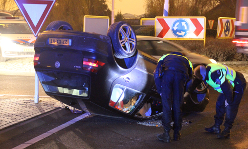 Poeldijk – Een automobilist is zaterdagochtend over de kop geslagen op de Monsterseweg in Poeldijk. De man kwam met hulp uit de auto waarna hij het op een rennen heeft gezet. Een getuige is de man achterna gerend en de positie doorgegeven aan de politie. Die hield de man niet veel later aan op de Pouwelslaan. Hij was vermoedelijk onder invloed. De man is overgebracht naar het bureau. Berger Vreugdenhil heeft de auto geborgen.