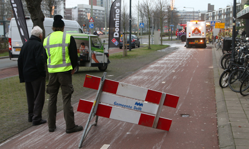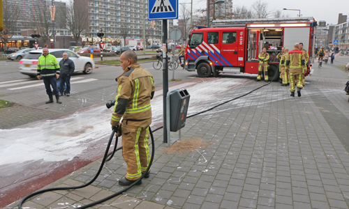 Delft – De brandweer is zaterdagmiddag opgeroepen voor een bijzondere melding aan de Papsouwselaan in Delft. Een vat met 25 liter latex bleek te zijn gevallen, waarschijnlijk heeft een fietser het laten vallen. Doordat er vele tweewielers door de latex reden, kwam het hele fietspad onder het witte spul te zitten. De brandweer heeft samen met firma Vreugdenhil geprobeerd het fietspad te reinigen. Een gespecialiseerd bedrijf is inmiddels onderweg om te assisteren.
