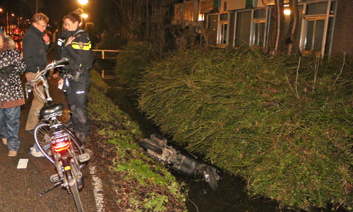 Delft – Vrijdagavond 13 januari is er op de Buitenwatersloot in Delft een scooterrijder in het water belandt. Bij aankomst van de politie gaf de bestuurder toe dat hij onder invloed was van alcohol. De bestuurder van de scooter is tijdelijk warm gehouden onder een deken. Bij aankomst van de ambulancedienst is de bestuurdet gecontroleerd in de ambulance. De bestuurder is na controle vervoerd naar het ziekenhuis. Een bergingsbedrijf heeft later op de avond de scooter uit de sloot gehaald.
