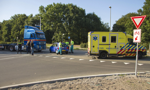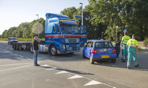 Schiedam – Op de Westfrankelandsedijk zijn vrijdagavond een vrachtwagen en een auto met elkaar in botsing gekomen. De auto reed voor de vrachtwagen en sloeg af naar links om vervolgens gelijk kerende de weg weer op te draaien. De vrachtwagen kan de auto niet meer ontwijken met de aanrijding tot gevolg. Omdat de bestuurster van de auto wat pijn aan haar hoofd had en niet meer wist wat er gebeurd was werd er een ambulance gebeld. De bestuurster van de vrachtwagen kwam met de schrik vrij en raakte niet gewond. De ambulance heeft de dame nagekeken maar ze hoefde niet mee naar het ziekenhuis.
