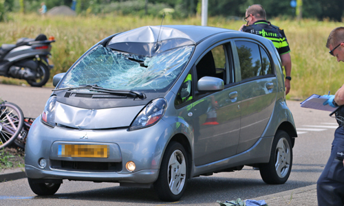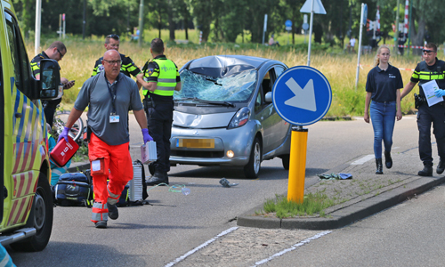 Door nog onbekende oorzaak kwam een fietser in aanrijding met een auto. De fietser raakte zwaargewond en aan de schade aan het voertuig te zien was de klap enorm. De ambulancedienst stabiliseerde het slachtoffer om hem hierna te kunnen vervoeren. Het slachtoffer is hierop A1 (met spoed) naar het Westeinde ziekenhuis vervoerd. De verpleegkundige van de tweede ambulance en de MMT-Arts reden mee met de ambulance.