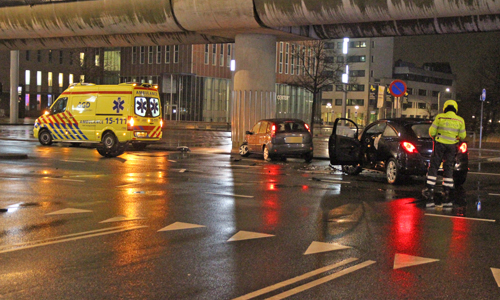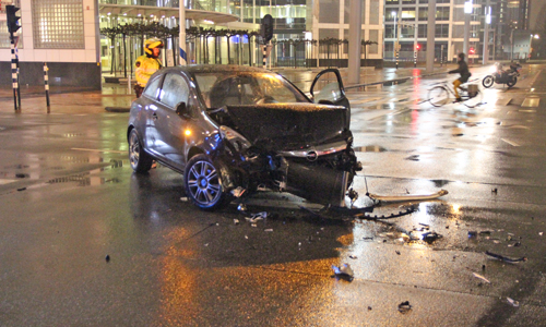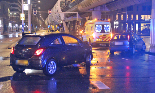 Den Haag – In de nacht van maandag op dinsdag heeft er een flinke aanrijding plaatsgevonden op de kruising Prinses Beatrixlaan met de Schenkkade in Den Haag. Twee personenauto’s kwamen in botsing met elkaar. Van beide voertuigen schoten de airbags uit. Een persoon werd door de ambulancedienst nagekeken op eventuele verwondingen. Uiteindelijk hoefde er niemand te worden vervoerd naar het ziekenhuis. De schade van de auto’s was flink. Er kwam een berger ter plaatse om de auto’s af te voeren. Het kruispunt waar het ongeval plaatsvond staat inmiddels berucht om de vele ongevallen. Dit kruispunt is een berucht kruispunt omdat de voorrangskwestie vaak onduidelijk is. Ook in dit geval was het onduidelijk wie er voorrang had.