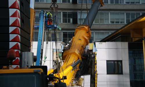 Rotterdam – De berging van de vorige week omgevallen bouwkraan bij het oude Erasmus MC in Rotterdam is gisteravond begonnen. Vandaag wordt het werk weer hervat. De bouwkraan stond daar om het oude gebouw van het ziekenhuis te slopen. Het gevaarte was echter veel te zwaar en zakte door de vloer heen.