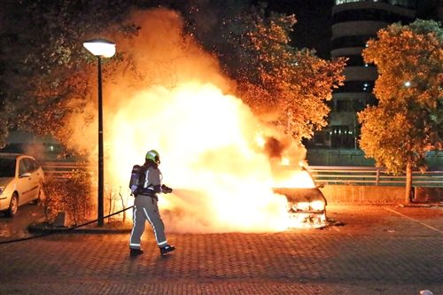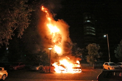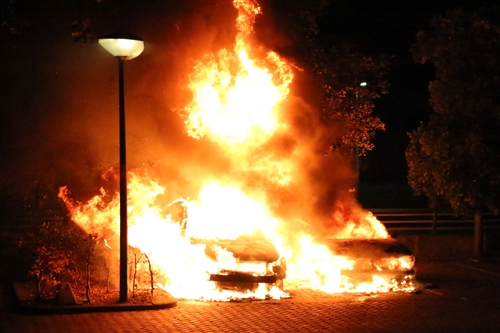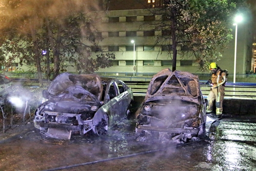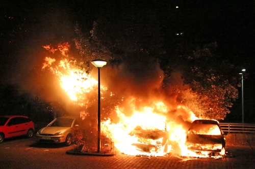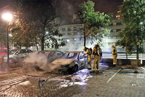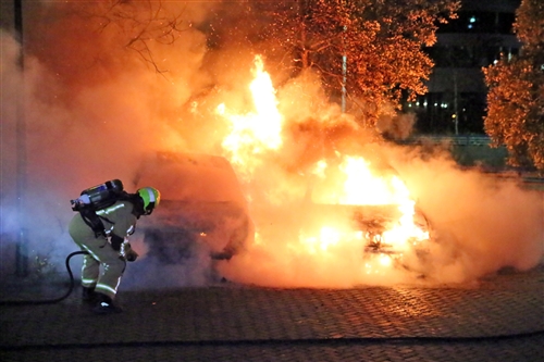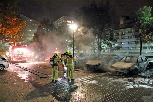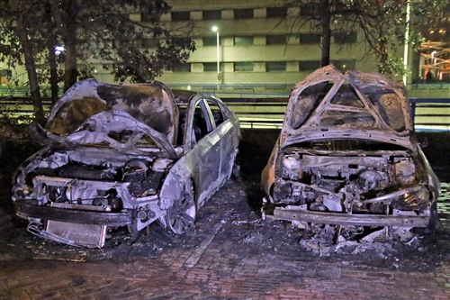 Den Haag – Afgelopen nacht zijn twee auto’s in vlammen op gegaan aan de Francois Valentijnstraat in Den Haag. De auto’s stonden naast elkaar geparkeerd toen een van de twee in brand vloog. De vlammen grepen razendsnel om zich heen en door de sterke wind vloog ook de tweede auto in brand. Tijdens de brand waren veel ontploffingen waarneembaar. Bij een van de explosies kwamen de vlammen zo hoog dat twee bomen en een lantaarnpaal het moesten ontzien. De brandweer kwam snel ter plaatse, maar kon de auto’s niet meer redden. Deze waren inmiddels al volledig uitgebrand. De brandweer heeft het vuur gedoofd en de auto’s goed na geblust. Een geparkeerde auto liep schade op door de hitte. Een andere auto kon net op tijd ontkomen aan de vlammen. De politie heeft kort onderzoek gedaan naar de toedracht van de brand, maar deze was door de hevige brand niet meer te herleiden. Echter wordt brandstichting niet uitgesloten.