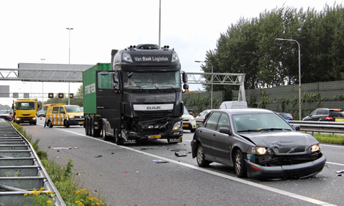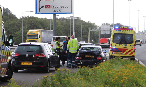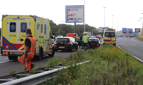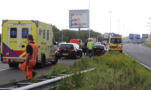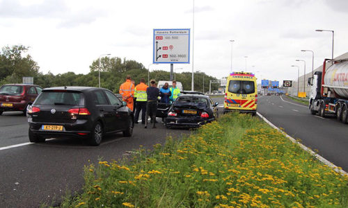 Vlaardingen – Bij een botsing op de A20 ter hoogte van de oprit Vlaardingen Holy zijn vanmiddag vier auto’s en een vrachtwagen flink beschadigd. Als gevolg van de aanrijding was de rechter rijstrook richting Schiedam tijdelijk afgesloten. Hierdoor ontstond vanuit Maassluis en flinke file in de richting van Rotterdam. Er was veel materiele schade aan de voertuigen. Twee ambulances waren ter plaatse om eventuele slachtoffers te verzorgen. Een takelbedrijf heeft met meerdere takelwagens de voertuigen weggesleept.