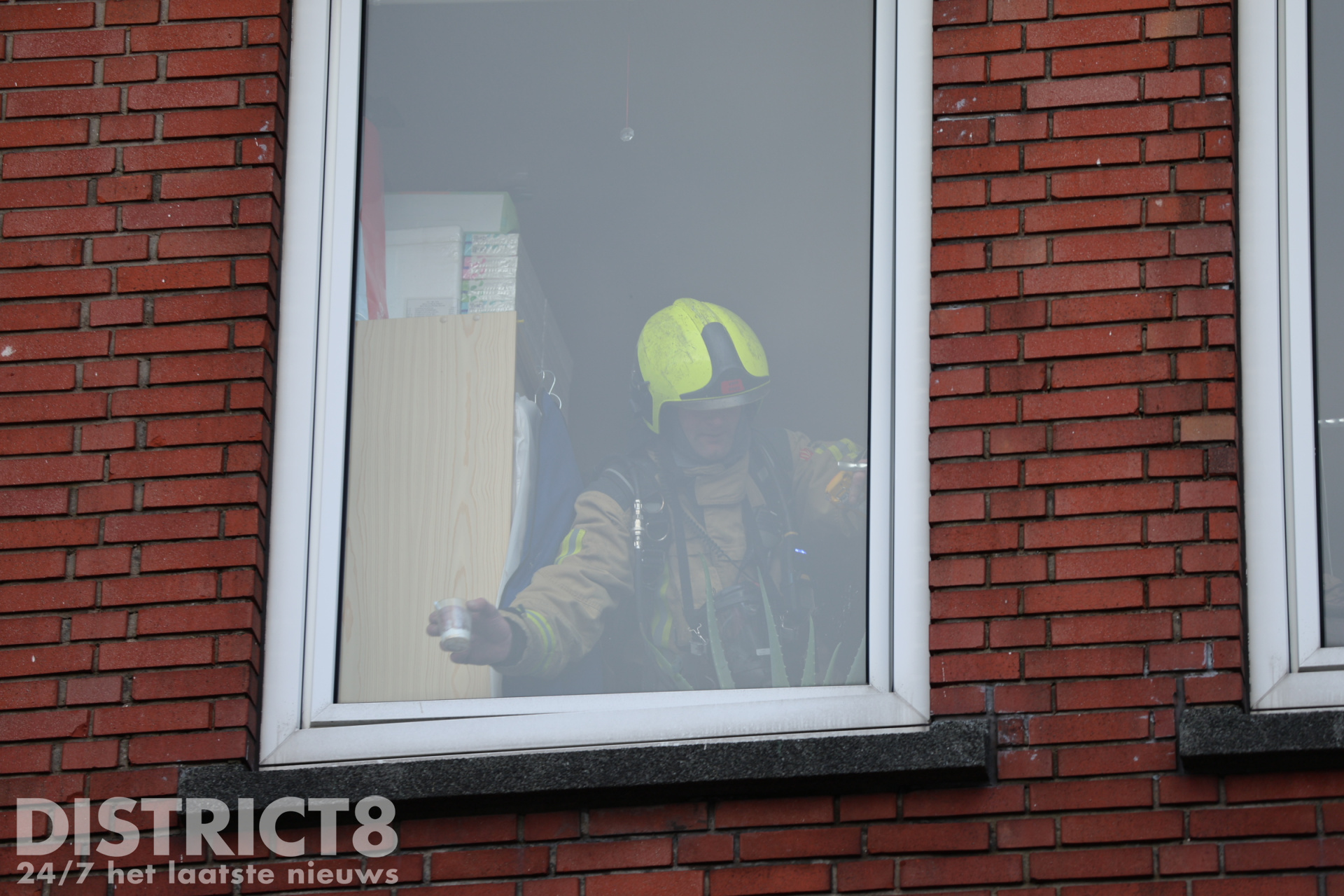 Rond half drie brak de brand uit in een woning op de bovenste etage van een portiek. De brand was aan de achterzijde van de woning uitslaand.